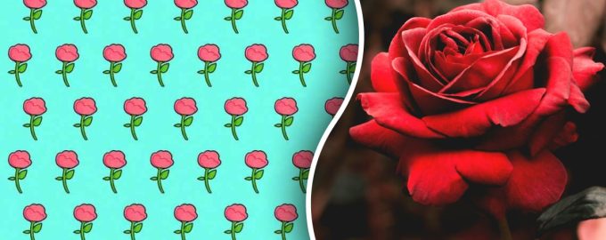 Paveikslėlyje matome daugybę rožių, kurios išdėstytos eilėmis. Iš pirmo žvilgsnio gali atrodyti, kad jos visos vienodos, tačiau taip nėra. Atidžiau įsižiūrėjus tampa akivaizdu, kad viena gėlė vis dėlto skiriasi nuo kitų.