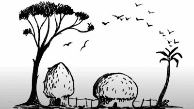 Piešinyje pavaizduoti medžiai, žolė ir akmenys – viskas atrodo įprasta, kol nepradedi įsižiūrėti atidžiau. Dramblio kontūrai meistriškai paslėpti detalėse: šešėliuose, liemenyse ir šakų išlinkimuose. Štai kodėl dauguma žmonių jo iš karto nepastebi.