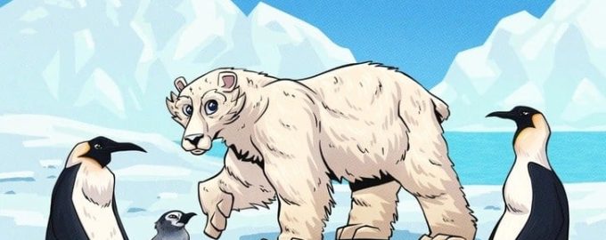 Paveikslėlyje padaryta klaida: baltosios meškos ir pingvinai yra poliariniai gyvūnai, tačiau jie yra dviejuose skirtinguose poliuose. Tai reiškia, kad baltosios meškos yra šiaurės ašigalyje, o pingvinai – pietų ašigalyje.