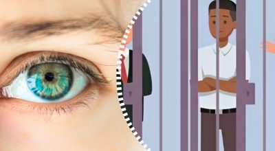 Paveikslėlyje, kuriame pavaizduoti trys vyrai, tik vienas iš jų planuoja pabėgti. Išnagrinėkite kiekvieną sulaikytųjų detalę ir emocijas.